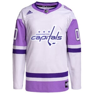 Show your support for a meaningful cause with the Washington Capitals White Purple Hockey Fights Cancer Primegreen Jersey. Designed in partnership with the NHL’s Hockey Fights Cancer initiative, this jersey blends Washington, D.C. pride with compassion. Every name, number, logo, and patch is stitched or embroidered for a premium finish. Made with eco-friendly Primegreen materials, it’s a powerful statement of unity — honoring those affected by cancer while representing your Capitals with purpose.