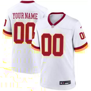 Step onto game day with bold style in the Custom Washington Commanders White Alternate Game Jersey – All Stitched. This modern alternate design blends the crisp, clean look of white with the Commanders’ signature colors and all-stitched player details for a premium, long-lasting finish. Made from lightweight, breathable fabric, it’s engineered to keep you cool and comfortable during every play. The tailored fit delivers a streamlined silhouette, while the customization option lets you add your own name and number for a personal touch. Whether you’re representing at FedExField, hosting a watch party, or adding to your jersey collection, this alternate Commanders jersey delivers both style and comfort for true Washington fans.