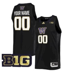 This black alternate–style jersey offers a modern, aggressive look while honoring the University of Washington and the Washington Huskies legacy. Black alternates are favored by fans who enjoy a sleek, contemporary style without losing connection to Washington state pride. Fully stitched details ensure durability, while the Big Ten patch represents a defining moment in UW basketball history as the Huskies compete on a larger national stage. Ideal for collectors or fans seeking something different, this jersey blends innovation with tradition and has been satisfied by thousands of customers.