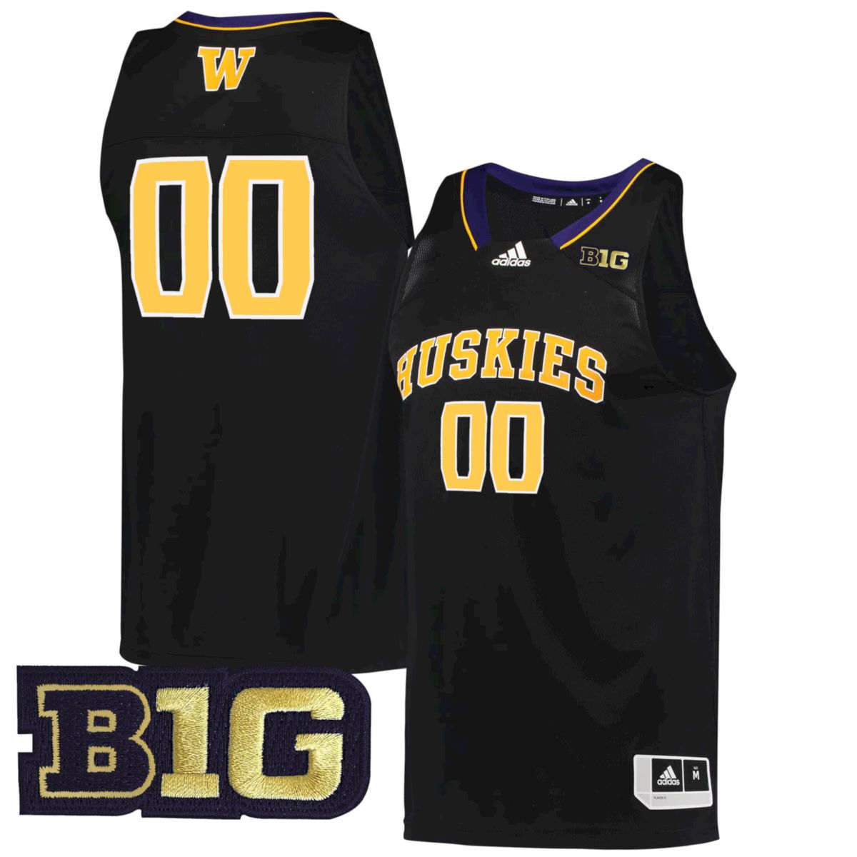 Custom Washington Huskies Basketball 2021/22 Black Throwback Jersey w/ B1G Patch – All Stitched