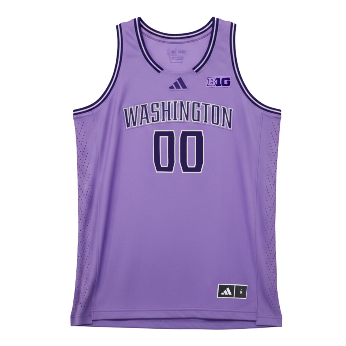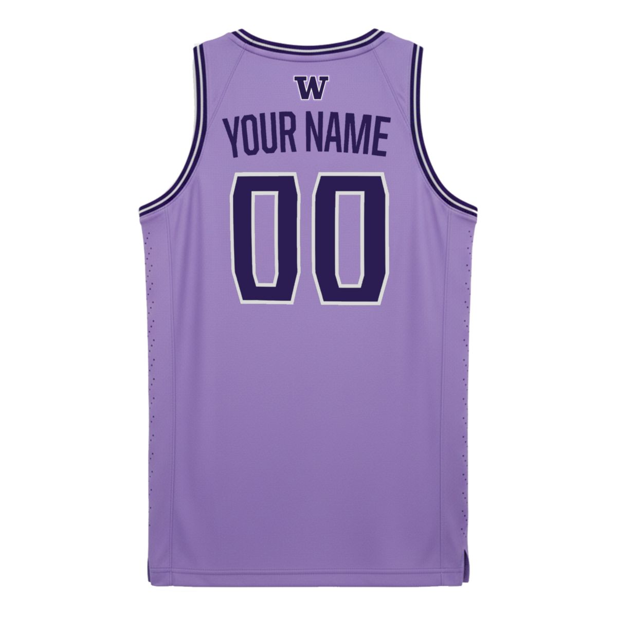 Custom Washington Huskies Basketball 2025/26 Lavender Alternate Jersey w/ B1G Patch - All Stitched
