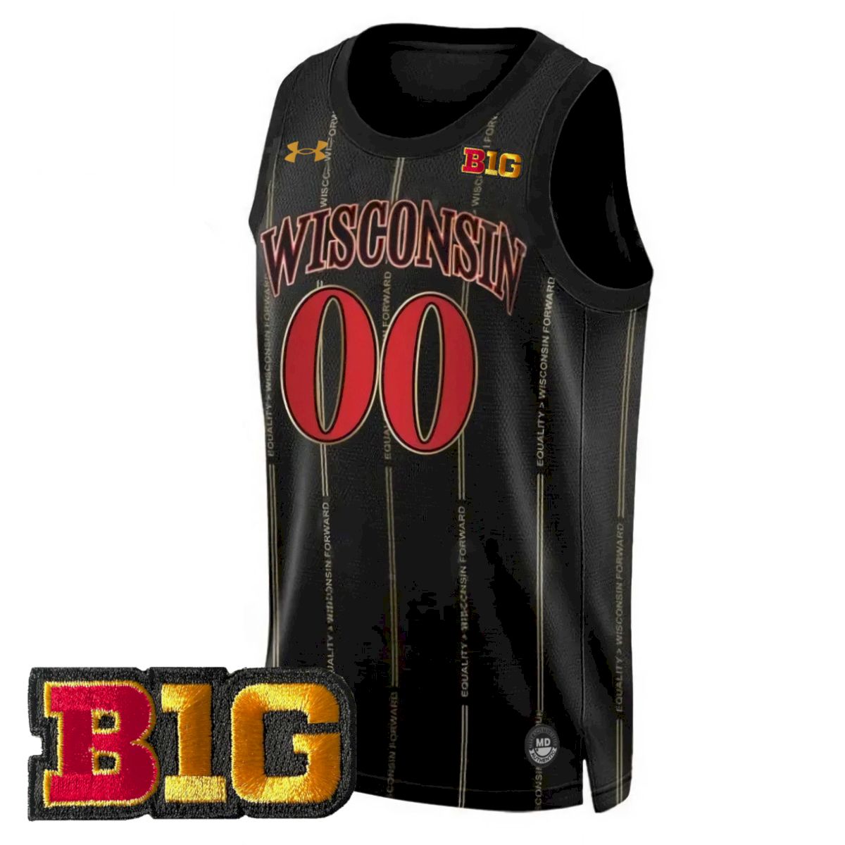 This 2022/23 Black Jersey with B1G patch offers a striking look for dedicated Wisconsin fans. Representing the University of Wisconsin, the Wisconsin Badgers symbolize toughness and pride across the state. The custom name and number are fully stitched, ensuring durability and standout contrast. An embroidered Badgers logo and stitched B1G patch add depth and texture to the design. The black base delivers a modern, aggressive feel while staying rooted in team tradition. Perfect for fans who want a bold expression of Badgers basketball loyalty.