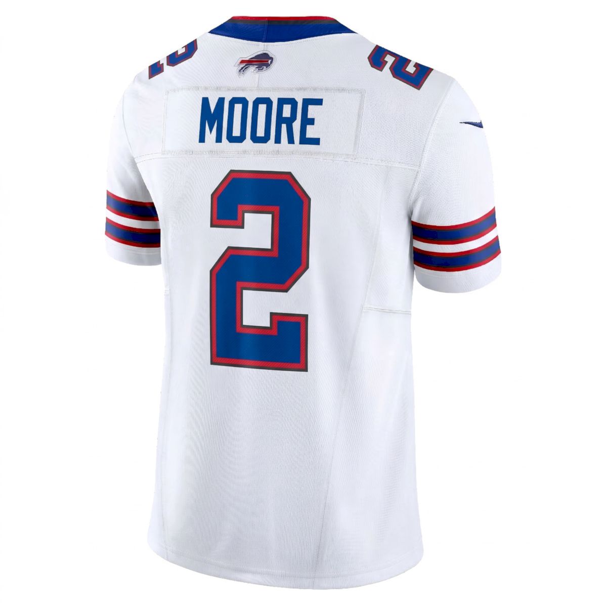 Elevate your game day wardrobe with the D.J. Moore Buffalo Bills White Away Vapor F.U.S.E Limited Jersey – All Stitched. The Vapor F.U.S.E. Limited Jersey is a premium fan jersey designed to mimic on-field aesthetics, featuring a tapered fit, chainmaille mesh grill at the neck, and 100% recycled polyester Dri-FIT fabric.