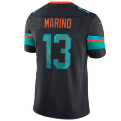 Commemorate greatness with the Dan Marino Miami Dolphins Pitch Blue 2025 Rivalries Collection Limited Jersey. This Florida-inspired Limited edition brings together Rivalries Collection history and modern upgrades. The Limited cut includes standard fit, Dri-FIT fabric, heat-transferred twill details, and a chainmaille mesh grill collar. To complete the premium feel, the stitched name, number, embroidered logo, and patch connect fans to the Dolphins legend and their state pride.