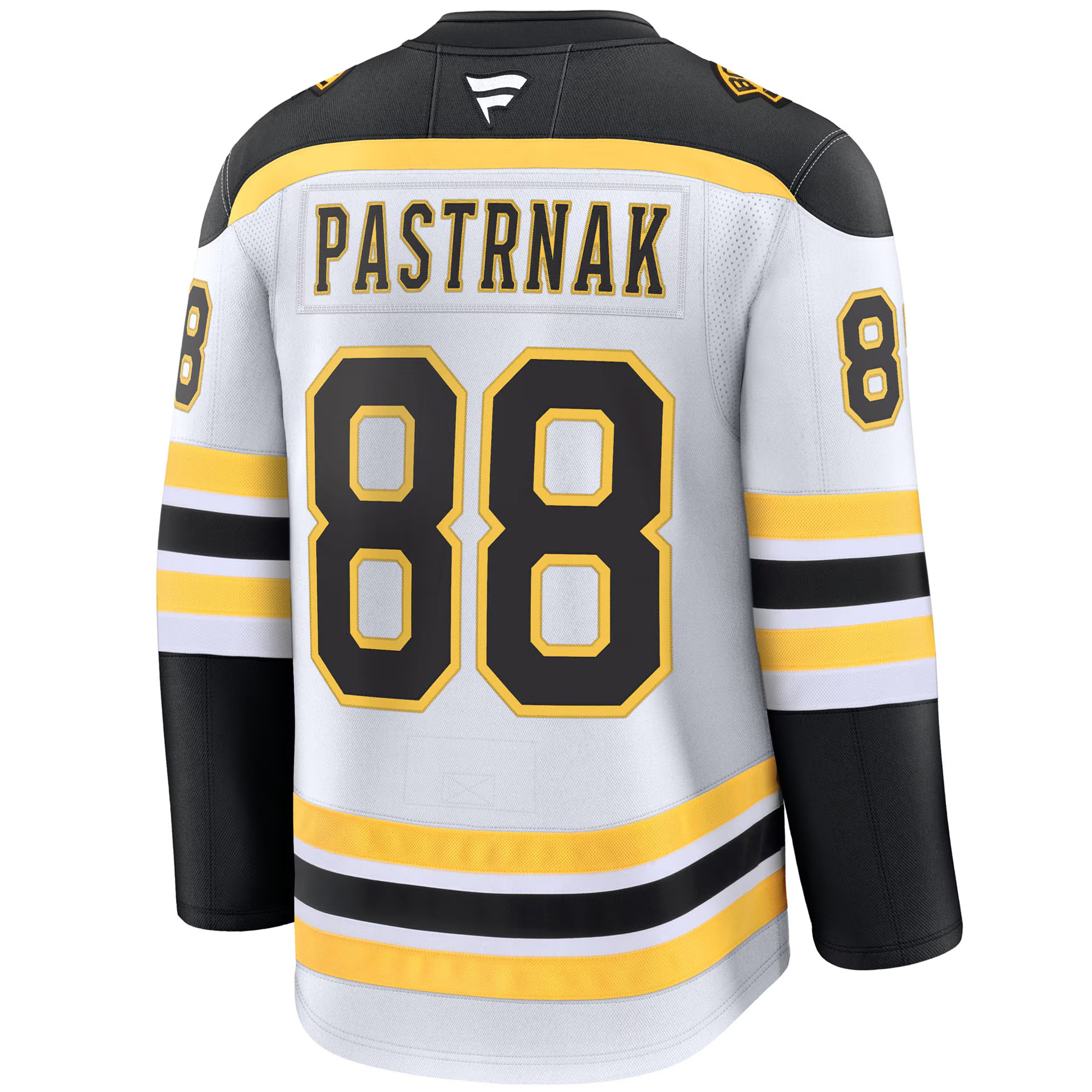 Show your Bruins loyalty wherever they go with the White Away Premium Jersey. Representing the legendary Boston Bruins, this clean white look balances tradition with toughness. David Pastrnak’s name and number are fully stitched, while the embroidered logos and shoulder patches enhance its premium design. Every detail reflects the resilient spirit of Boston—making it perfect for road-game excitement and every fan who bleeds black and gold with pride.