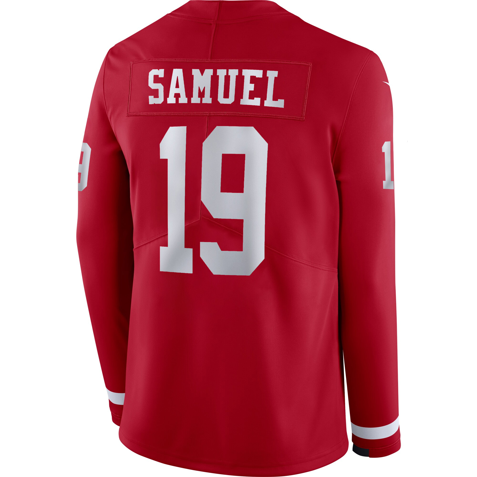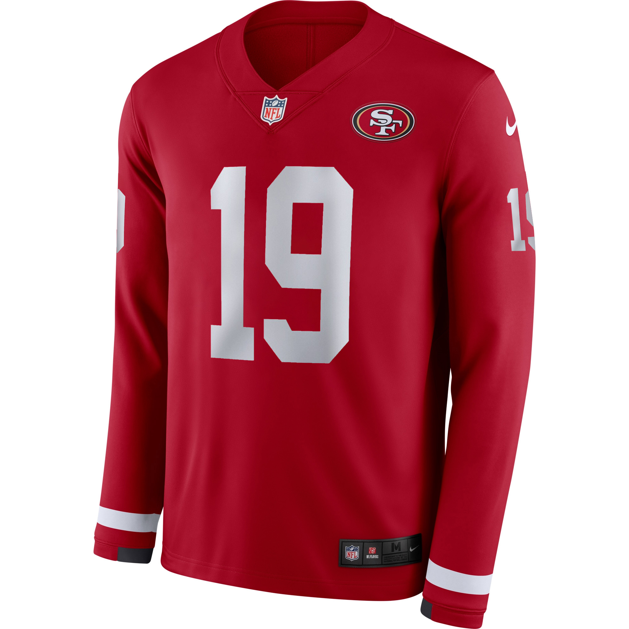 Bring the fire of the red & gold with this San Francisco 49ers Scarlet Therma Long Sleeve Jersey featuring Deebo Samuel. The scarlet shade reflects SF pride, while the stitched name and number and embroidered logo provide standout detail. Warm Therma material keeps you comfortable whether you’re in California or repping the Niners anywhere.