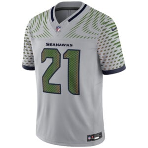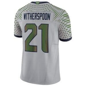 Take Pacific Northwest pride higher with the Devon Witherspoon Seattle Seahawks Wolf Grey 2025 Rivalries Collection Limited Jersey – All Stitched. This Limited jersey pairs Rivalries Collection inspiration with performance-driven details, including a standard fit, Dri-FIT fabric, heat-transferred twill accents, and a chainmaille mesh collar. With stitched Devon Witherspoon details, embroidered SEA logos, and patches, this jersey blends Washington tradition with next-level craftsmanship.