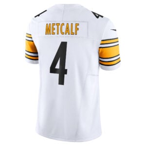 Suit up like a legend in the DK Metcalf Pittsburgh Steelers White Vapor F.U.S.E Limited Jersey – All Stitched. This premium jersey features fully stitched name, number, and details for a high-quality, stunning look. Designed in the Steelers’ classic black and gold, it’s perfect for game day or everyday fan wear. Whether you’re cheering from the stands or watching from home, show your Pittsburgh pride and rep Metcalf in style. A must-have for any true Steelers fan!