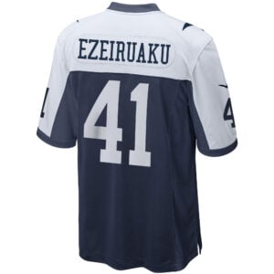 This Donovan Ezeiruaku Dallas Cowboys Navy Alternate Game Jersey – All Stitched is an essential piece of gear for any Dallas Cowboys fan looking to highlight their favorite jersey and player. The Donovan Ezeiruaku Dallas Cowboys Navy Alternate Game Jersey and team details provide a kickoff-ready look that elevates your excitement for game day. Made with comfort in mind, this Personalized Dallas Cowboys jersey delivers a standard, lightweight fit and features breathable mesh side panels for added ventilation.