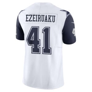 This Donovan Ezeiruaku Dallas Cowboys White Alternate Vapor F.U.S.E Limited Jersey – All Stitched is an essential piece of gear for any Dallas Cowboys fan looking to highlight their favorite jersey and player. The Donovan Ezeiruaku Dallas Cowboys White Alternate Vapor F.U.S.E Limited Jersey and team details provide a kickoff-ready look that elevates your excitement for game day. Made with comfort in mind, this Personalized Dallas Cowboys jersey delivers a standard, lightweight fit and features breathable mesh side panels for added ventilation.