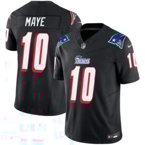 This Drake Maye New England Patriots 1996 Throwback Stitched Jersey – Black is an essential piece of gear for any New England Patriots fan looking to highlight their favorite player. The Drake Maye New England Patriots jersey and team details provide a kickoff-ready look that elevates your excitement for game day. Made with comfort in mind, this Drake Maye jersey delivers a standard, lightweight fit and features breathable mesh side panels for added ventilation.
