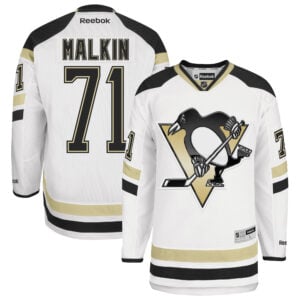 The Evgeni Malkin Pittsburgh Penguins White 2014 Stadium Series Jersey – All Stitched brings back the excitement of the outdoor classic with sleek, performance-driven style. Featuring a crisp white design with stitched team crest, embroidered Malkin name and number, and bold striping details, this jersey embodies the thrill of winter hockey under open skies. It’s a proud celebration of the Penguins’ history, the energy of Pittsburgh, and the leadership of one of its all-time greats.