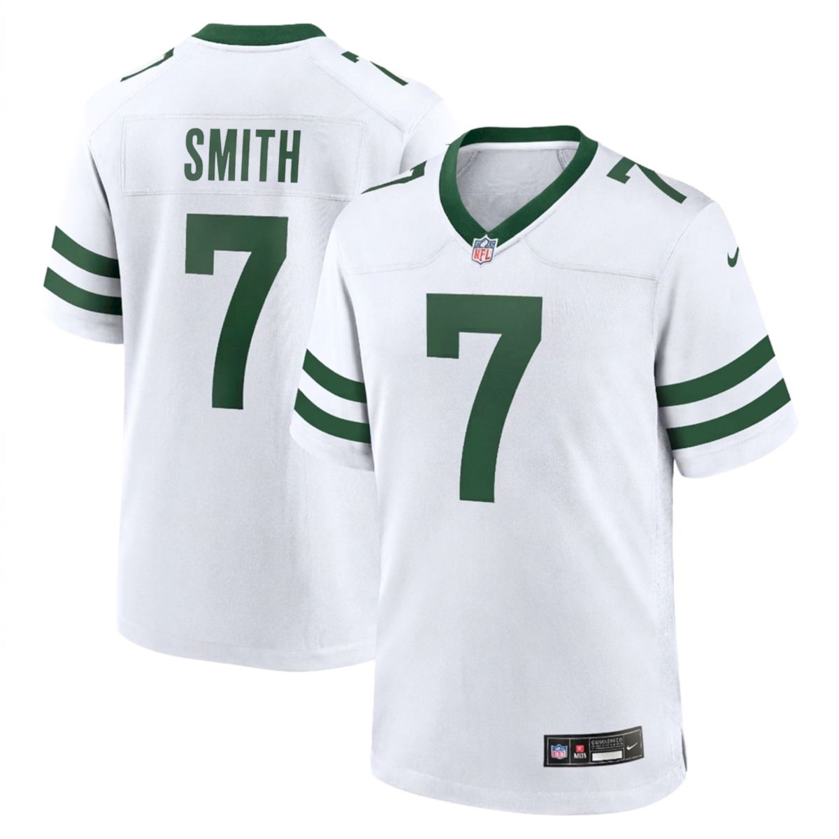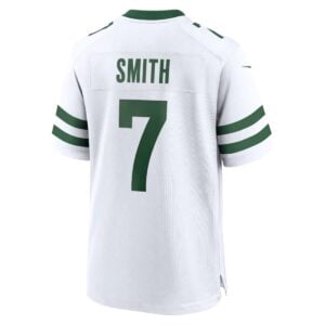 Elevate your game day attire with the Geno Smith New York Jets White Away Game Jersey. This all stitched piece is a tribute to the signal-caller who showed immense grit during his tenure in New York. Whether you are cheering from the stands or home, this jersey showcases your unwavering loyalty to the Gang Green. Satisfied by thousands of customers, our apparel ensures you look your best while representing your favorite squad. It is the perfect choice to buy for your love of sports or as a great gift for any fan. This high-quality garment captures the essence of the gridiron, making it a must-have. Show your pride for the Empire State with every wear.