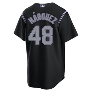 This Germán Márquez Colorado Rockies Black Alternate Jersey – All Stitched is an essential piece of gear for any Colorado Rockies fan looking to highlight their favorite jersey and player. The Germán Márquez Colorado Rockies Black Alternate Jersey and team details provide a kickoff-ready look that elevates your excitement for game day. Made with comfort in mind, this Colorado Rockies jersey delivers a standard, lightweight fit and features breathable mesh side panels for added ventilation.