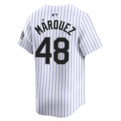 This Germán Márquez Colorado Rockies White Home Limited Jersey – All Stitched is an essential piece of gear for any Colorado Rockies fan looking to highlight their favorite jersey and player. The Germán Márquez Colorado Rockies White Home Limited Jersey and team details provide a kickoff-ready look that elevates your excitement for game day. Made with comfort in mind, this Colorado Rockies jersey delivers a standard, lightweight fit and features breathable mesh side panels for added ventilation.