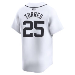This Gleyber Torres Detroit Tigers White Home Limited Jersey – All Stitched is an essential piece of gear for any Detroit Tigers fan looking to highlight their favorite jersey and player. The Gleyber Torres Detroit Tigers White Home Limited Jersey and team details provide a kickoff-ready look that elevates your excitement for game day. Made with comfort in mind, this Detroit Tigers jersey delivers a standard, lightweight fit and features breathable mesh side panels for added ventilation.