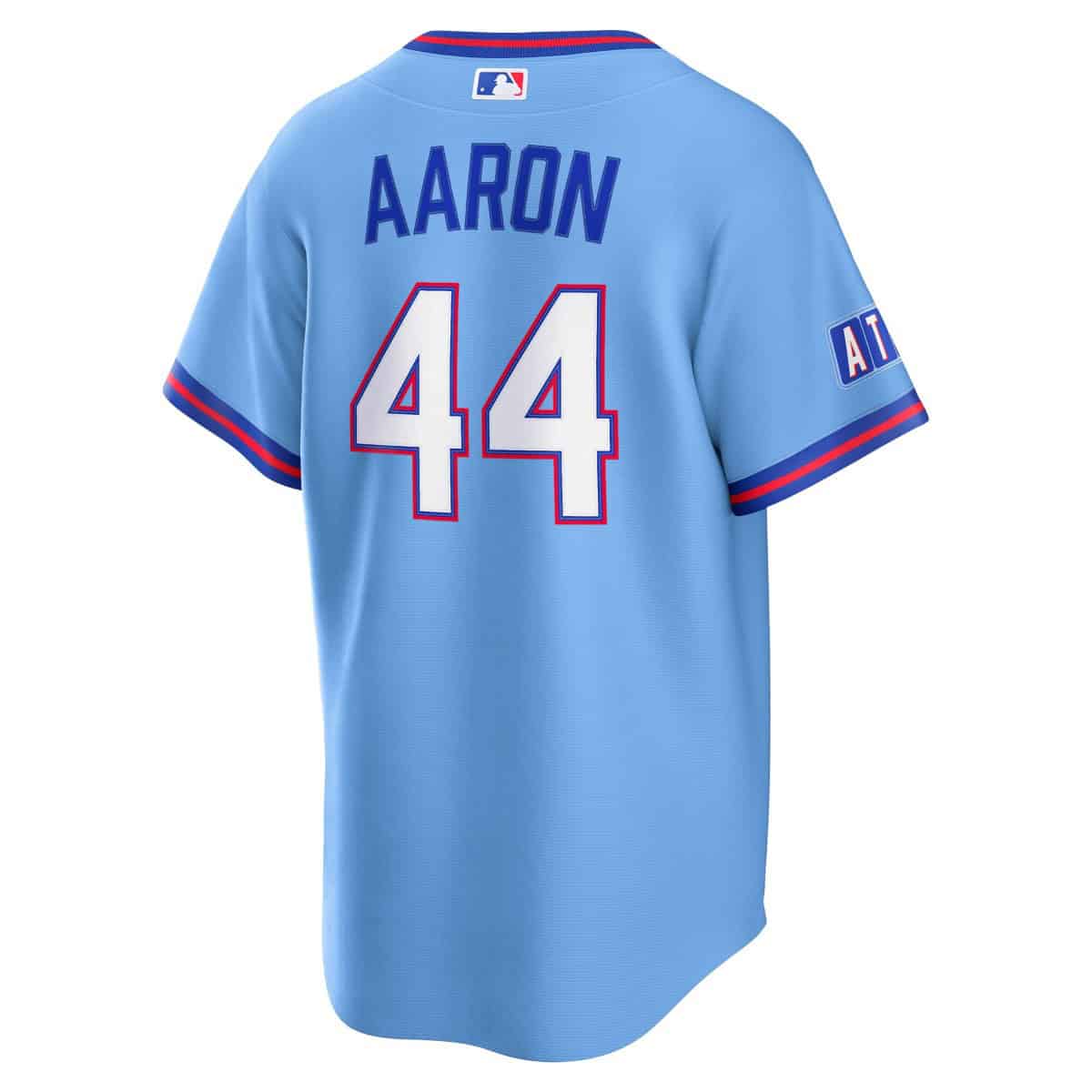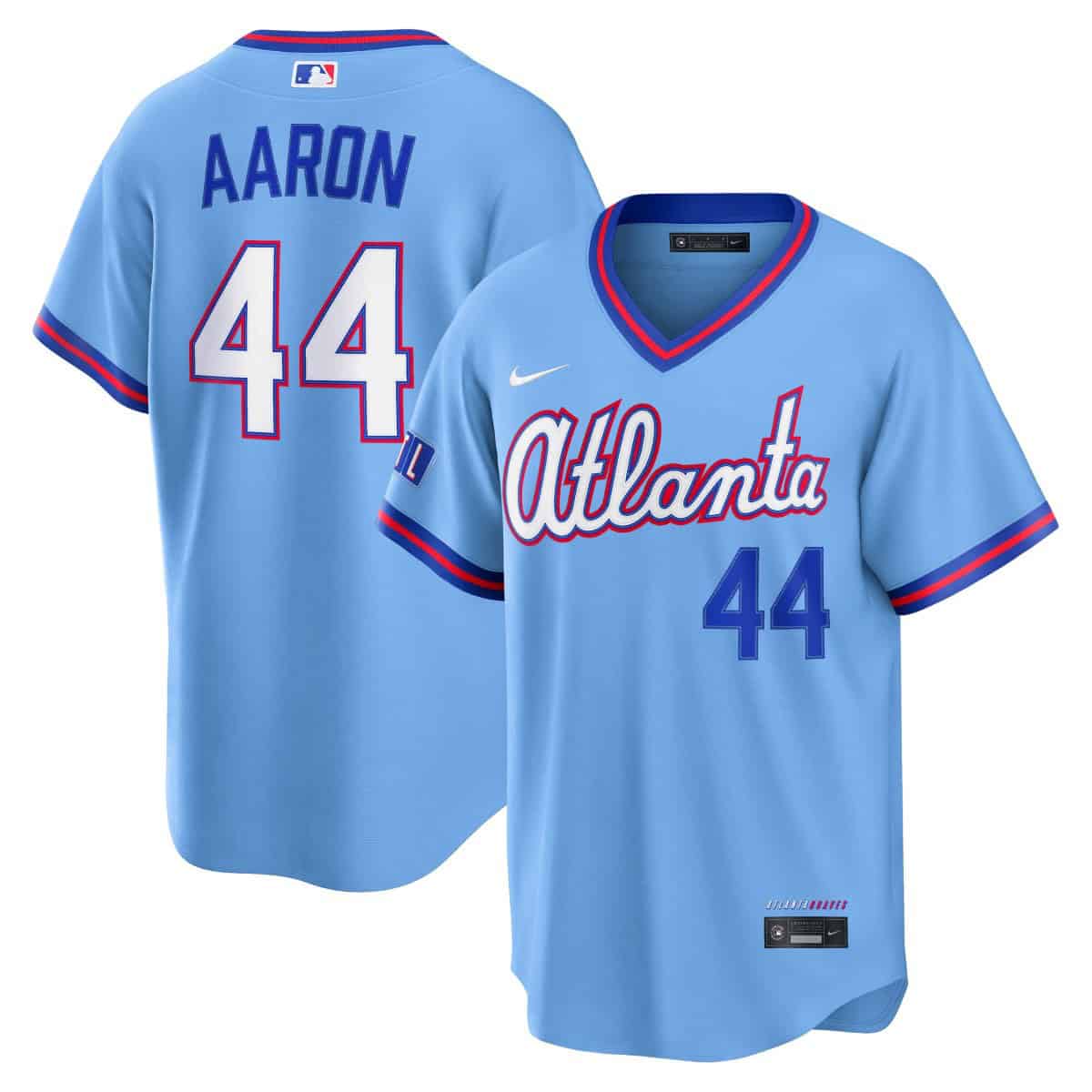 Celebrate a true baseball legend with the Hank Aaron Atlanta Braves Powder Blue 2026 City Connect Stadium Jersey. This all stitched piece showcases incredible attention to detail, perfect for any devoted Braves fan looking to represent the A-Town with pride. Hank Aaron remains a cornerstone of Georgia sports history, famously breaking records with 755 career home runs and leading the team to greatness. Whether you are heading to the stadium in Atlanta or watching from home, this jersey is a must-have for your collection. Satisfied by thousands of customers, our apparel ensures you look your best while honoring the Home Run King. It is the perfect choice for your love of sports or as a great gift for any supporter.