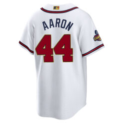 This Hank Aaron Atlanta Braves White 2022 Gold Program Jersey – All Stitched is an essential piece of gear for any Atlanta Braves fan looking to highlight their favorite jersey and player. The Hank Aaron Atlanta Braves White 2022 Gold Program Jersey and team details provide a kickoff-ready look that elevates your excitement for game day. Made with comfort in mind, this Atlanta Braves jersey delivers a standard, lightweight fit and features breathable mesh side panels for added ventilation.