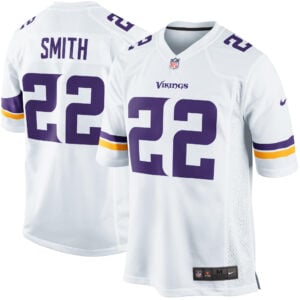 Travel with the team in the Harrison Smith Minnesota Vikings White Away Game Jersey – All Stitched. Designed with Minnesota’s tradition in mind, this clean white edition brings Smith’s number and name stitched across the jersey in bold detail. Embroidered Vikings logos and patches highlight team identity, while carrying the short name “MIN” as a proud badge for fans on the road.