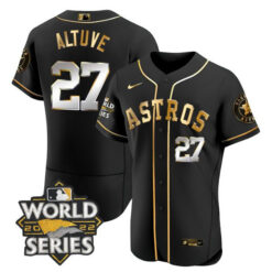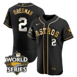 As the ultimate Houston Astros fan, you deserve the same look your favorite players sport out on the field. This Houston Astros World Series Black Gold Jersey – All Stitched jersey brings the team’s design to your wardrobe for a consistently spirited look on game day. The polyester material and slick Houston Astros graphics are just what any fan needs to look and feel their best.