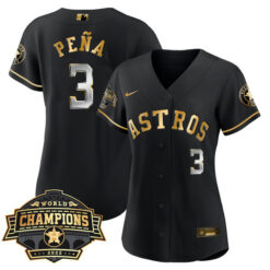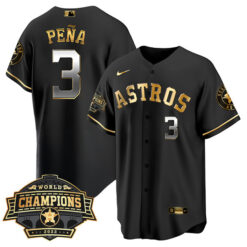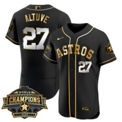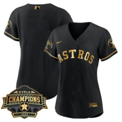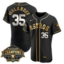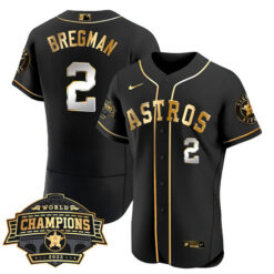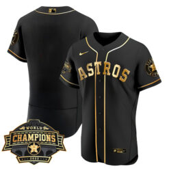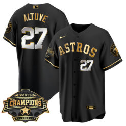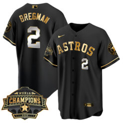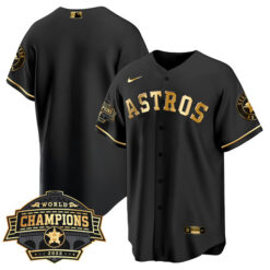 As the ultimate Houston Astros fan, you deserve the same look your favorite players sport out on the field. This Houston Astros World Series Champs Limited Patch Black Gold Jersey – All Stitched jersey brings the team’s design to your wardrobe for a consistently spirited look on game day. The polyester material and slick Houston Astros graphics are just what any fan needs to look and feel their best.