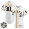 As the ultimate Houston Astros fan, you deserve the same look your favorite players sport out on the field. This Houston Astros World Series Champs Patch Black Gold Jersey – All Stitched jersey brings the team’s design to your wardrobe for a consistently spirited look on game day. The polyester material and slick Houston Astros graphics are just what any fan needs to look and feel their best.