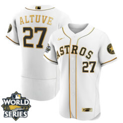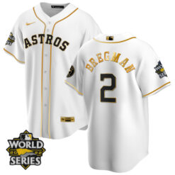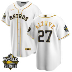 Houston Astros World Series Champs Patch White Gold Jersey – All Stitched