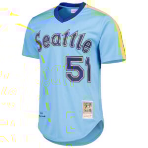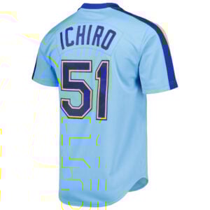 This Ichiro Suzuki Seattle Mariners Light Blue Cooperstown Collection Jersey – All Stitched is an essential piece of gear for any Seattle Mariners fan looking to highlight their favorite jersey and player. The Ichiro Suzuki Seattle Mariners Light Blue Cooperstown Collection Jersey and team details provide a kickoff-ready look that elevates your excitement for game day. Made with comfort in mind, this Seattle Mariners jersey delivers a standard, lightweight fit and features breathable mesh side panels for added ventilation.