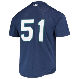 This Ichiro Suzuki Seattle Mariners Navy Cooperstown Collection Jersey – All Stitched is an essential piece of gear for any Seattle Mariners fan looking to highlight their favorite jersey and player. The Ichiro Suzuki Seattle Mariners Navy Cooperstown Collection Jersey and team details provide a kickoff-ready look that elevates your excitement for game day. Made with comfort in mind, this Seattle Mariners jersey delivers a standard, lightweight fit and features breathable mesh side panels for added ventilation.
