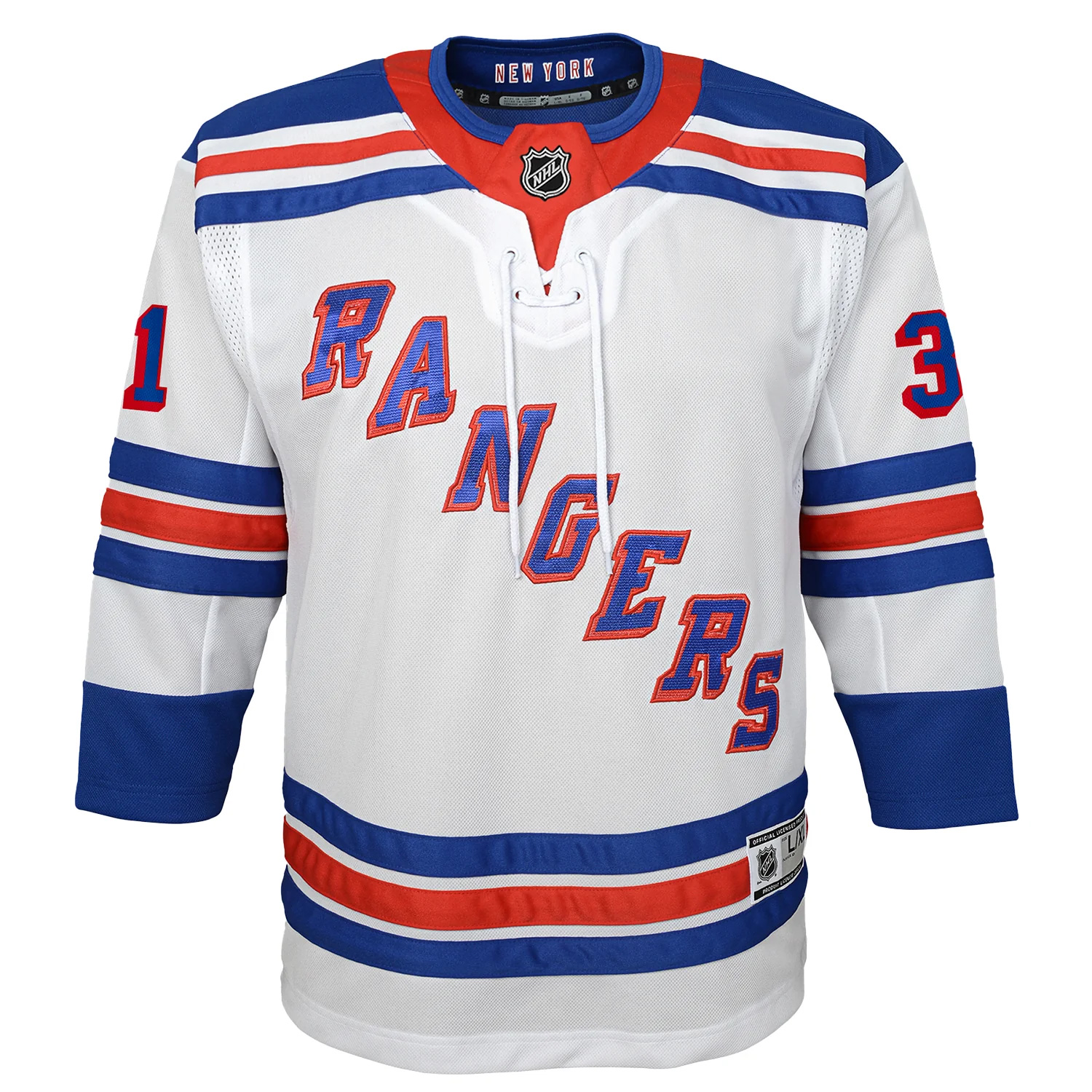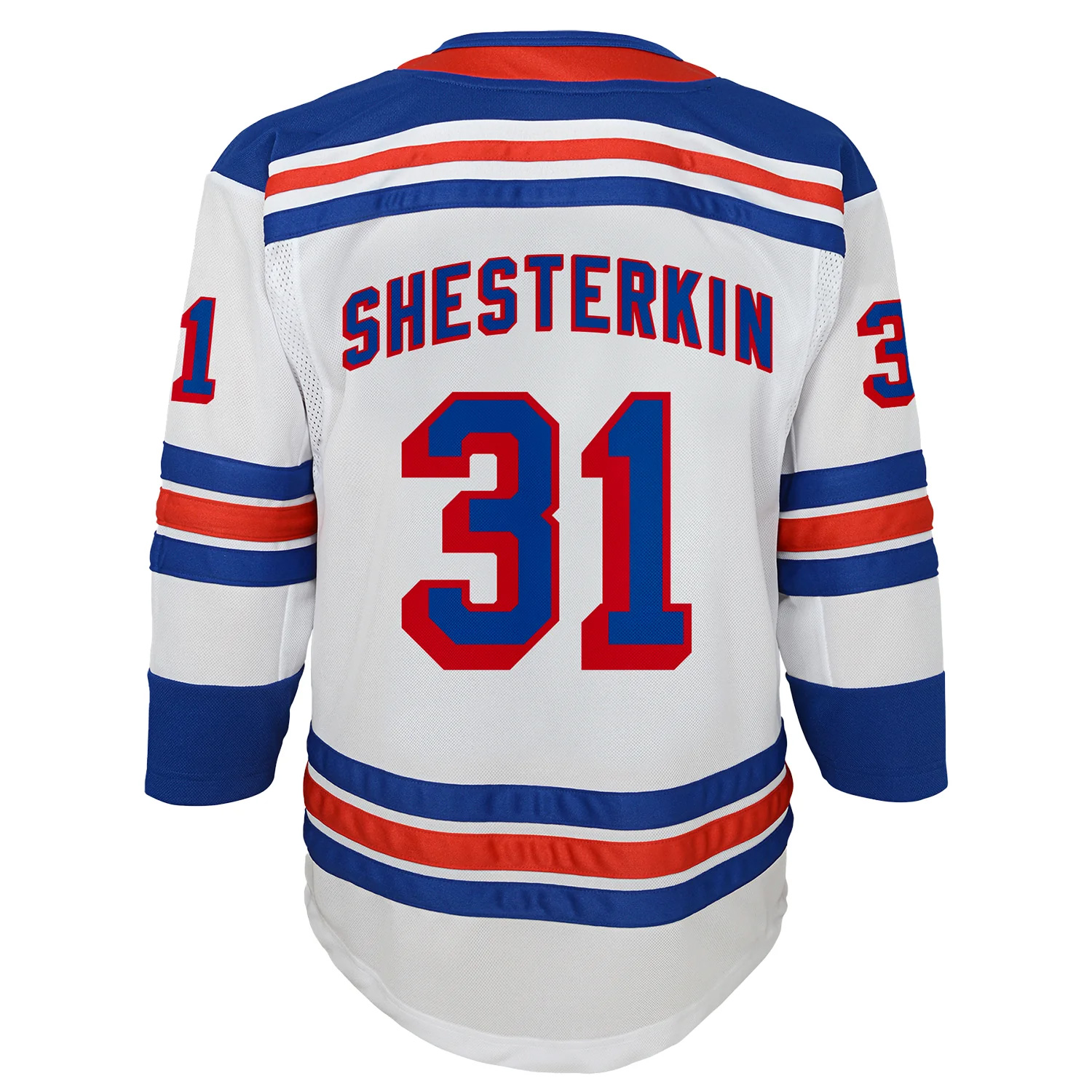 Support the team sustainably in the Igor Shesterkin White Away Primegreen Jersey. Featuring stitched numbers and name and an embroidered Rangers logo and patches, it reflects New York state pride while showcasing eco-friendly Primegreen materials. Perfect for away games or casual fan wear.