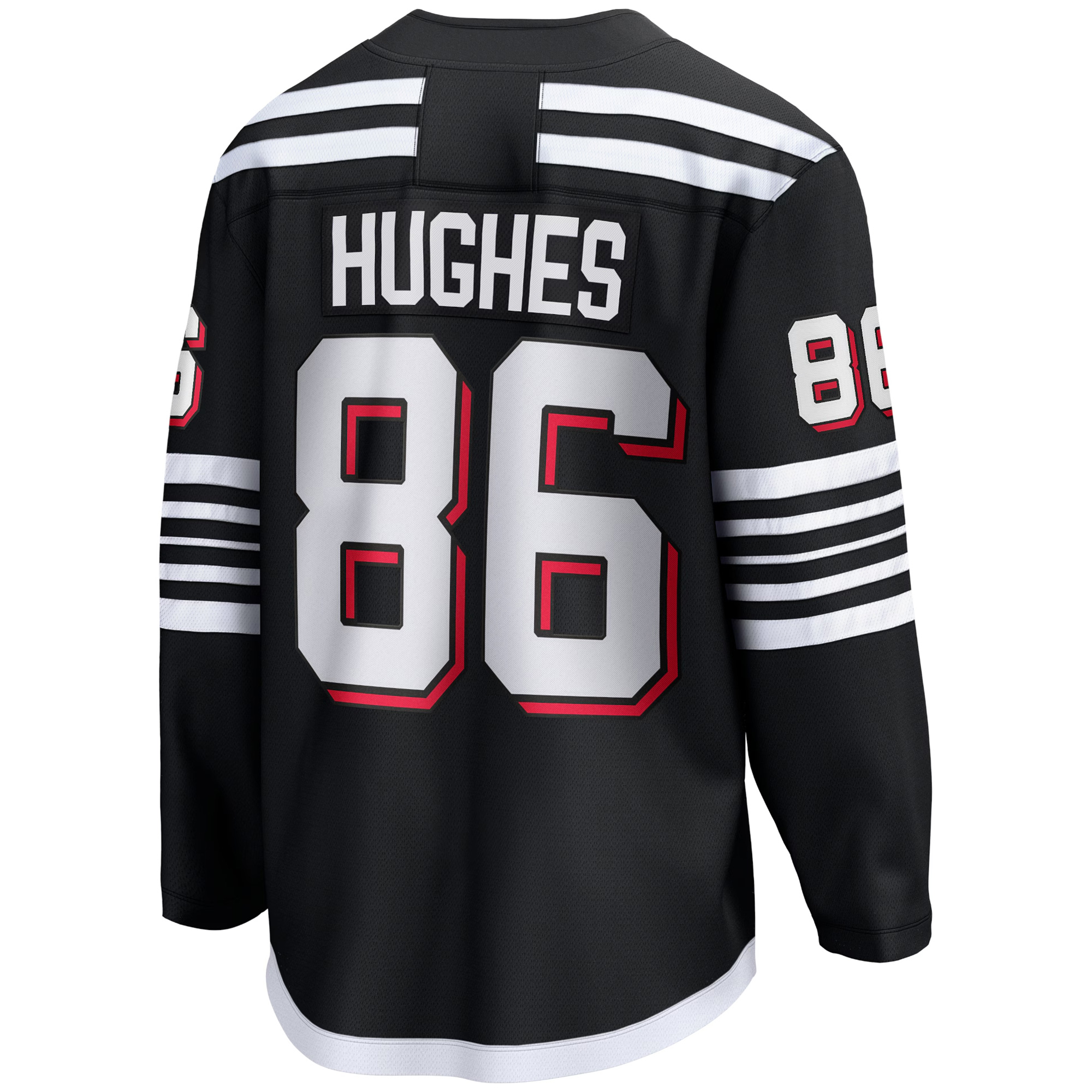 Stand apart with the Jack Hughes New Jersey Devils Black Alternate Premium Jersey. Built with stitched Devils crest, embroidered patches, name, and number, this alternate black look pays homage to Hughes’ rising stardom while adding bold flair to the Devils fan wardrobe.