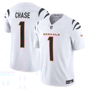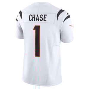 This Ja’Marr Chase Cincinnati Bengals White Road Vapor F.U.S.E Limited Jersey – All Stitched is an essential piece of gear for any Cincinnati Bengals fan looking to highlight their favorite jersey and player. The Ja’Marr Chase Cincinnati Bengals White Road Vapor F.U.S.E Limited Jersey and team details provide a kickoff-ready look that elevates your excitement for game day. Made with comfort in mind, this Personalized Cincinnati Bengals jersey delivers a standard, lightweight fit and features breathable mesh side panels for added ventilation.