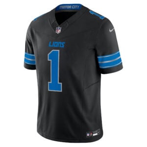 This Jameson Williams Detroit Lions Black Alternate Vapor F.U.S.E Limited Jersey – All Stitched is an essential piece of gear for any Detroit Lions fan looking to highlight their favorite jersey and player. The Jameson Williams Detroit Lions Black Alternate Vapor F.U.S.E Limited Jersey and team details provide a kickoff-ready look that elevates your excitement for game day. Made with comfort in mind, this Jameson Williams Detroit Lions jersey delivers a standard, lightweight fit and features breathable mesh side panels for added ventilation.