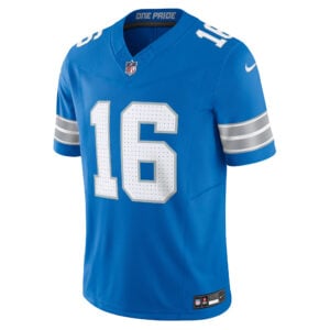 This Jared Goff Detroit Lions Blue Home Vapor F.U.S.E Limited Jersey – All Stitched is an essential piece of gear for any Detroit Lions fan looking to highlight their favorite jersey and player. The Jared Goff Detroit Lions Blue Home Vapor F.U.S.E Limited Jersey and team details provide a kickoff-ready look that elevates your excitement for game day. Made with comfort in mind, this Jared Goff Detroit Lions jersey delivers a standard, lightweight fit and features breathable mesh side panels for added ventilation.