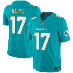 Jaylen Waddle Miami Dolphins Aqua “Gold Trim” Vapor F.U.S.E Limited Jersey – All Stitched