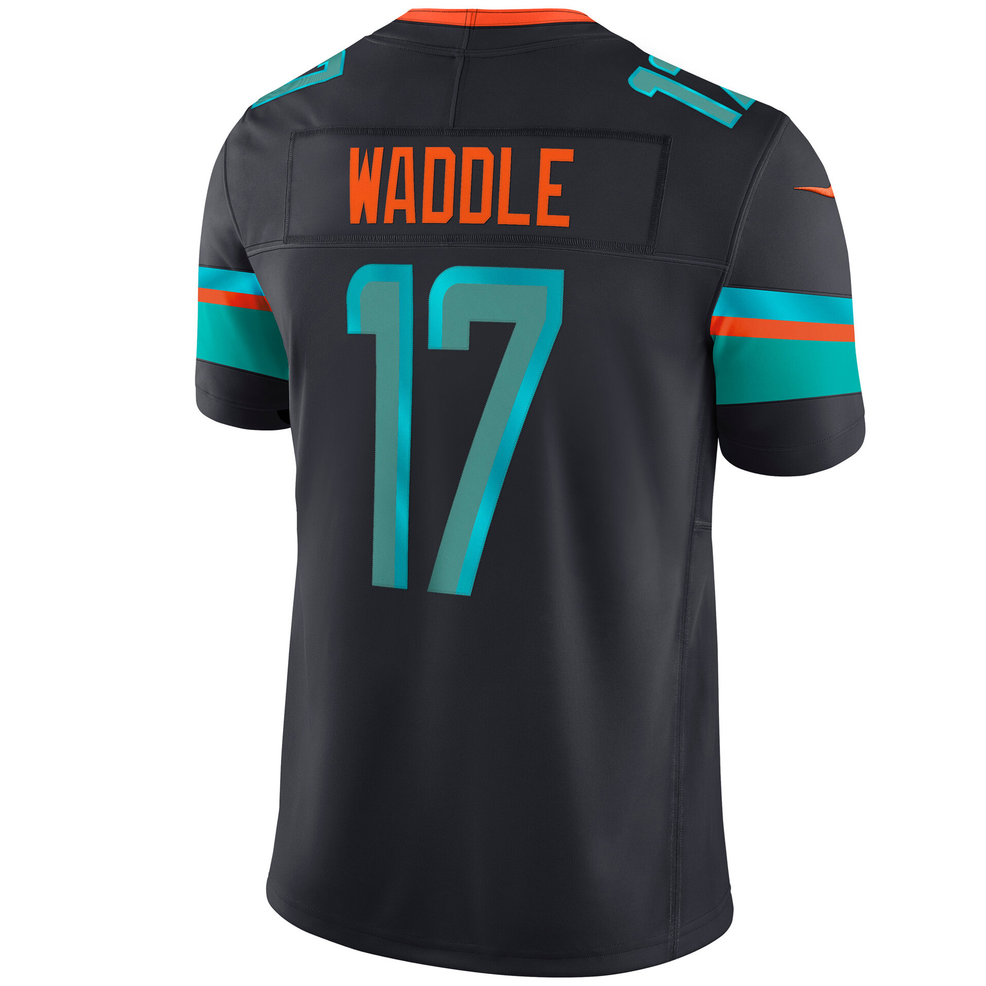 The Jaylen Waddle Miami Dolphins Pitch Blue 2025 Rivalries Collection Limited Jersey blends on-field inspired features with the Rivalries Collection’s iconic style. Miami fans in Florida and beyond will appreciate the Limited version’s standard fit, Dri-FIT technology, heat-transferred twill name and numbers, and chainmaille mesh collar grill. Complete with stitched details including Waddle’s name, number, team logo, and patch, this Limited jersey shows your pride in both the Dolphins and their legendary rivalries.