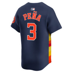 This Jeremy Peña Houston Astros Navy Alternate Limited Jersey – All Stitched is an essential piece of gear for any Jeremy Peña Houston Astros fan looking to highlight their favorite jersey and player. The Jeremy Peña Houston Astros Navy Alternate Limited Jersey and team details provide a kickoff-ready look that elevates your excitement for game day. Made with comfort in mind, this Jeremy Peña Houston Astros jersey delivers a standard, lightweight fit and features breathable mesh side panels for added ventilation.