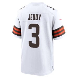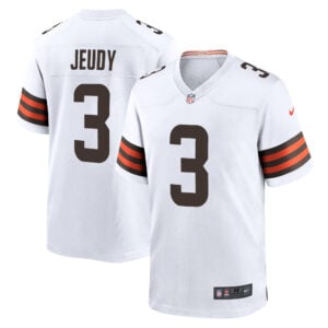 Light up away games with the Jerry Jeudy Cleveland Browns White Away Game Jersey – All Stitched. Featuring stitched details of Jeudy’s name and number, plus embroidered team logos and patches, this jersey reflects the pride of Cleveland football and the passion of Ohio fans everywhere.