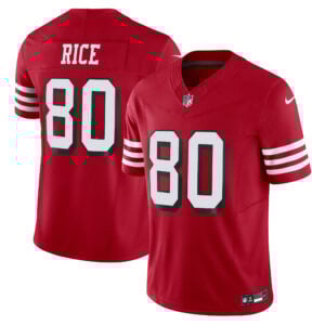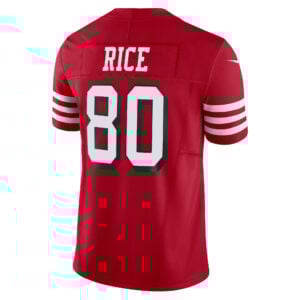 This Jerry Rice San Francisco 49ers Scarlet Alternate Vapor F.U.S.E Limited Jersey – All Stitched is an essential piece of gear for any San Francisco 49ers fan looking to highlight their favorite jersey and player. The Jerry Rice San Francisco 49ers Scarlet Alternate Vapor F.U.S.E Limited Jersey and team details provide a kickoff-ready look that elevates your excitement for game day. Made with comfort in mind, this Personalized San Francisco 49ers jersey delivers a standard, lightweight fit and features breathable mesh side panels for added ventilation.