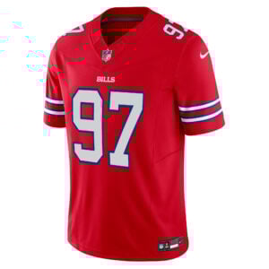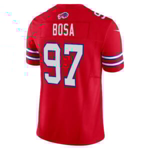 Joey Bosa Buffalo Bills Red Alternate Vapor F.U.S.E Limited Jersey – All Stitched captures the spirit of Florida football pride with the Bucs’ iconic red home colorway. Representing the University of Michigan alum who became an NFL legend, Brady’s number is stitched across the chest, back, and shoulders, with his nameplate embroidered for lasting detail. The Buffalo Bills logos and patches are fully stitched, showcasing team loyalty and state pride with every element of this bold home design.