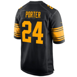 Suit up like a legend in the Joey Porter Jr Pittsburgh Steelers Black 2nd Alternate Game Jersey – All Stitched. This premium jersey features fully stitched name, number, and details for a high-quality, stunning look. Designed in the Steelers’ classic black and gold, it’s perfect for game day or everyday fan wear. Whether you’re cheering from the stands or watching from home, show your Pittsburgh pride and rep Porter Jr in style. A must-have for any true Steelers fan!