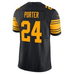 Suit up like a legend in the Joey Porter Jr Pittsburgh Steelers Black 2nd Alternate Vapor F.U.S.E Limited Jersey – All Stitched. This premium jersey features fully stitched name, number, and details for a high-quality, stunning look. Designed in the Steelers’ classic black and gold, it’s perfect for game day or everyday fan wear. Whether you’re cheering from the stands or watching from home, show your Pittsburgh pride and rep Porter Jr in style. A must-have for any true Steelers fan!