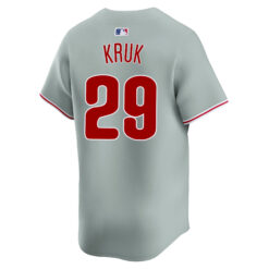 This John Kruk Philadelphia Phillies Grey Road Limited Jersey – All Stitched is an essential piece of gear for any Philadelphia Phillies fan looking to highlight their favorite jersey and player. The John Kruk Philadelphia Phillies Grey Road Limited Jersey and team details provide a kickoff-ready look that elevates your excitement for game day. Made with comfort in mind, this Philadelphia Phillies jersey delivers a standard, lightweight fit and features breathable mesh side panels for added ventilation.