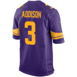 The Jordan Addison Minnesota Vikings Purple Alternate Game Jersey – All Stitched delivers bold team spirit. Stitched player details, embroidered logos, and a powerful alternate purple design show Minnesota fans’ pride while celebrating Addison’s role in the Vikings offense.