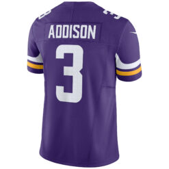 The Jordan Addison Minnesota Vikings Purple Home Vapor F.U.S.E Limited Jersey – All Stitched connects modern innovation to Vikings tradition. Featuring stitched details, embroidered team logos, and precision patches, it represents Minnesota pride with a cutting-edge style.