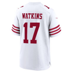 This Jordan Watkins San Francisco 49ers White Road Game Jersey – All Stitched is an essential piece of gear for any San Francisco 49ers fan looking to highlight their favorite jersey and player. The Jordan Watkins San Francisco 49ers White Road Game Jersey and team details provide a kickoff-ready look that elevates your excitement for game day. Made with comfort in mind, this Jordan Watkins San Francisco 49ers jersey delivers a standard, lightweight fit and features breathable mesh side panels for added ventilation.
