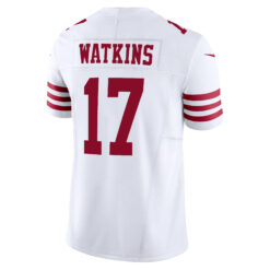 This Jordan Watkins San Francisco 49ers White Road Vapor F.U.S.E Limited Jersey – All Stitched is an essential piece of gear for any San Francisco 49ers fan looking to highlight their favorite jersey and player. The Jordan Watkins San Francisco 49ers White Road Vapor F.U.S.E Limited Jersey and team details provide a kickoff-ready look that elevates your excitement for game day. Made with comfort in mind, this Jordan Watkins San Francisco 49ers jersey delivers a standard, lightweight fit and features breathable mesh side panels for added ventilation.