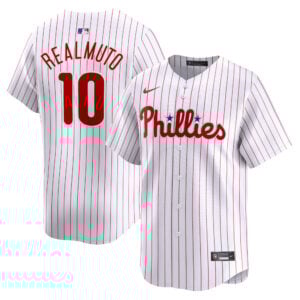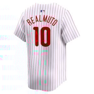 This JT Realmuto Philadelphia Phillies White Home Limited Jersey – All Stitched is an essential piece of gear for any Philadelphia Phillies fan looking to highlight their favorite jersey and player. The JT Realmuto Philadelphia Phillies White Home Limited Jersey and team details provide a kickoff-ready look that elevates your excitement for game day. Made with comfort in mind, this Philadelphia Phillies jersey delivers a standard, lightweight fit and features breathable mesh side panels for added ventilation.