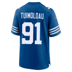 This JT Tuimoloau Indianapolis Colts Royal Blue Alternate Game Jersey – All Stitched is an essential piece of gear for any Indianapolis Colts fan looking to highlight their favorite jersey and player. The JT Tuimoloau Indianapolis Colts Royal Blue Alternate Game Jersey and team details provide a kickoff-ready look that elevates your excitement for game day. Made with comfort in mind, this Personalized Indianapolis Colts jersey delivers a standard, lightweight fit and features breathable mesh side panels for added ventilation.