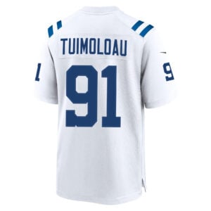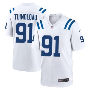 This JT Tuimoloau Indianapolis Colts White Away Game Jersey – All Stitched is an essential piece of gear for any Indianapolis Colts fan looking to highlight their favorite jersey and player. The JT Tuimoloau Indianapolis Colts White Away Game Jersey and team details provide a kickoff-ready look that elevates your excitement for game day. Made with comfort in mind, this Personalized Indianapolis Colts jersey delivers a standard, lightweight fit and features breathable mesh side panels for added ventilation.